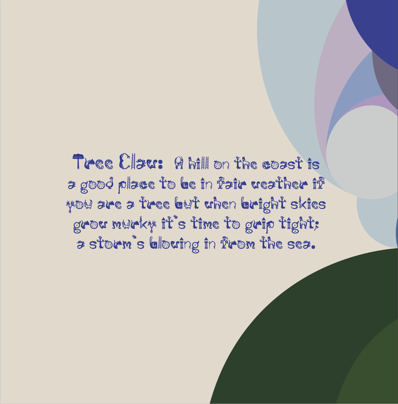 "Birds move at will, trees stand still and from time to time blood will spill."